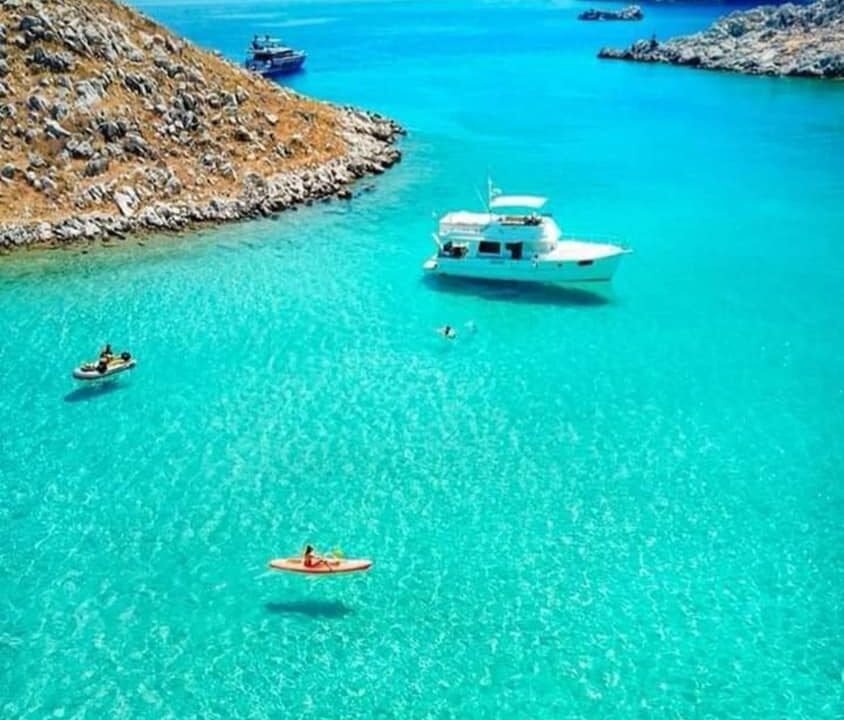 Descend into the extinct crater of the youngest volcano in the Aegean, the origin of Aphrodite, Symi one of the most beautiful islands in all Greece and its multicolored dwellings, Rhodes the capital of medieval Europe with its giant and its architectural wonders, Gyali... to play Robinson Crusoe, or Tilos and the discovery of the ghost village (depending on dates) are on the program! A sparkling cruise along the water.
